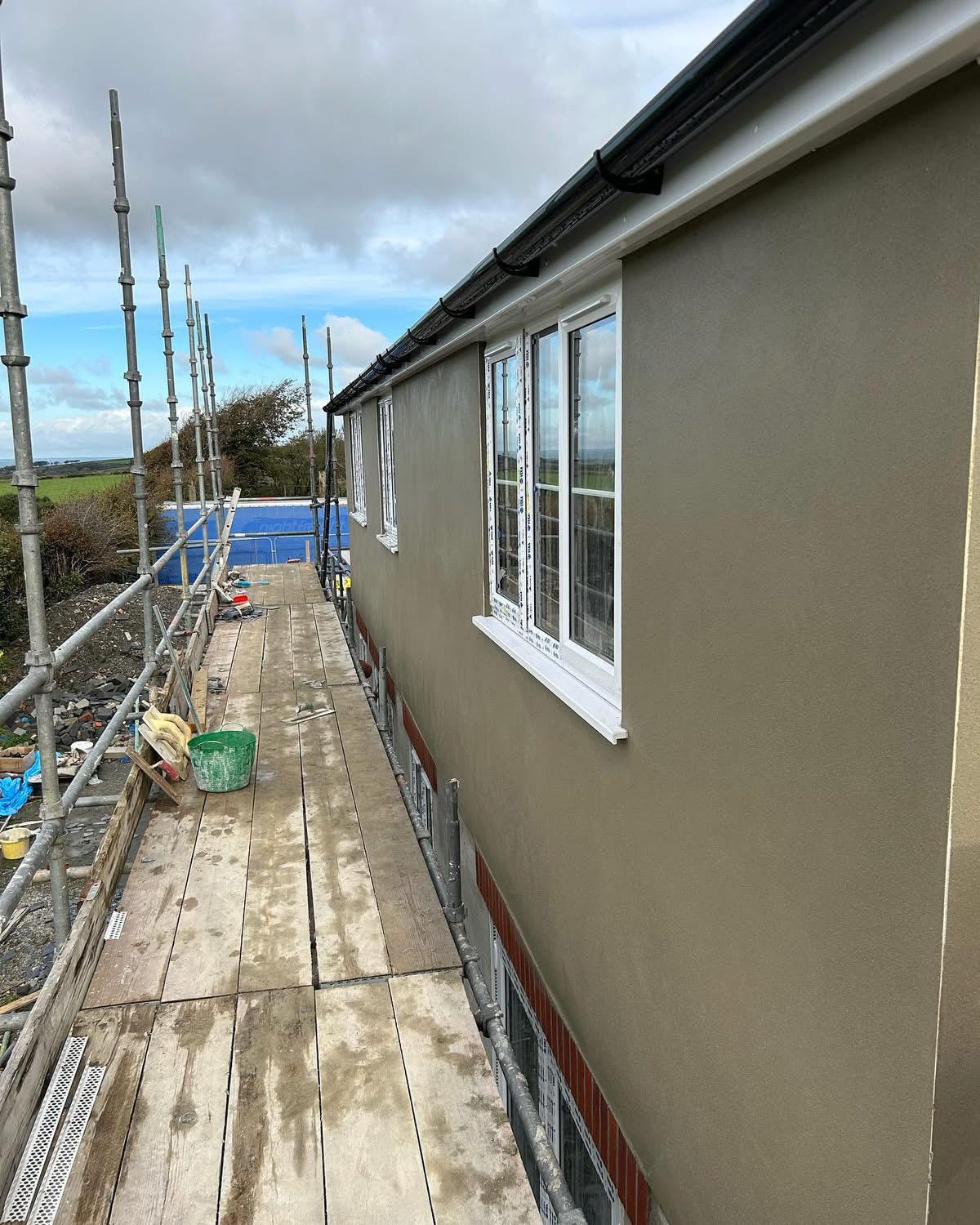 Single-coat, coloured render providing long-lasting protection with a modern finish.